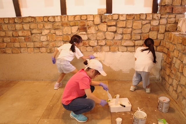 みんなで塗ると早い!子どもたちならではの細かいところを一生懸命塗る姿や、「もっと塗るところない?」とやる気満々の姿、脚立も平気で高い所まで塗る頼もしい姿など、この日一日でとても素敵な表情をたくさん見せてもらいました!