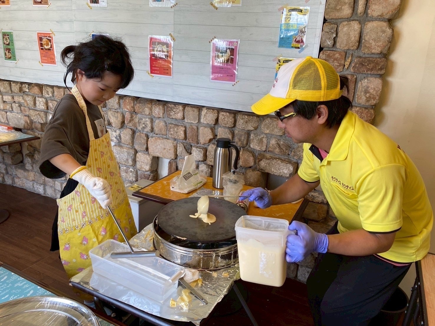 実店舗オープンを目指すことを決めた私たちは、この店舗を「ひよこ村のクレープ屋さん」にしたいと密かに考えていました。今までのところ、「ひよこ」らしさもなければ、「村」らしくもない(汗)せめて入り口のところだけでも「村の中の草むら」風を表現したくて、緑のマットを購入。この場所は、以前ベコベコだった床を貼り替えた場所です。上から緑のマットを置いてみると、いい感じ!向きを変えて置くとチェック柄みたいでさらにいい感じ!!始めはテンションが上がっているので、サクサク進んでいたマット貼りですが…端の方とか奥の方とか、どうしても真っ直ぐに貼れない場所が出てきて、スキマも出てきてかなり苦戦…最後には疲れと半分諦め?妥協?で、小さい切れ端を集めてスキマに貼っていくという、モワティエ流の得意技「ツギハギ」で進めて「ま、いっか!」で強制終了しました(汗)これも丸1日かかって、終わった時にはすでに外が暗くなっていました(泣)苦戦して出来上がった床は、よく見るとやっぱり雑です。だからよく見ないでほしい!切れ端で埋めたはずのスキマが、いつの間にか切れ端行方不明のまたスキマに戻っているなんてことは当たり前の「ひよこ村」になりそう(苦笑)床と壁を変えることができ、ようやくここまで来ました!ついに、念願の「エアコン」が設置されました!専門的なことは職人の父に教わりながら、自分たちで出来ることをやって、取り付け完了!建物の構造上、取り付け場所が限られていてエアコンの向きは微妙ですが、それを補うための扇風機も取り付けました。そして、古かったトイレも新しくしてもらいました!イートインスペース完成まで、あと少し!パート4へ続く・・・