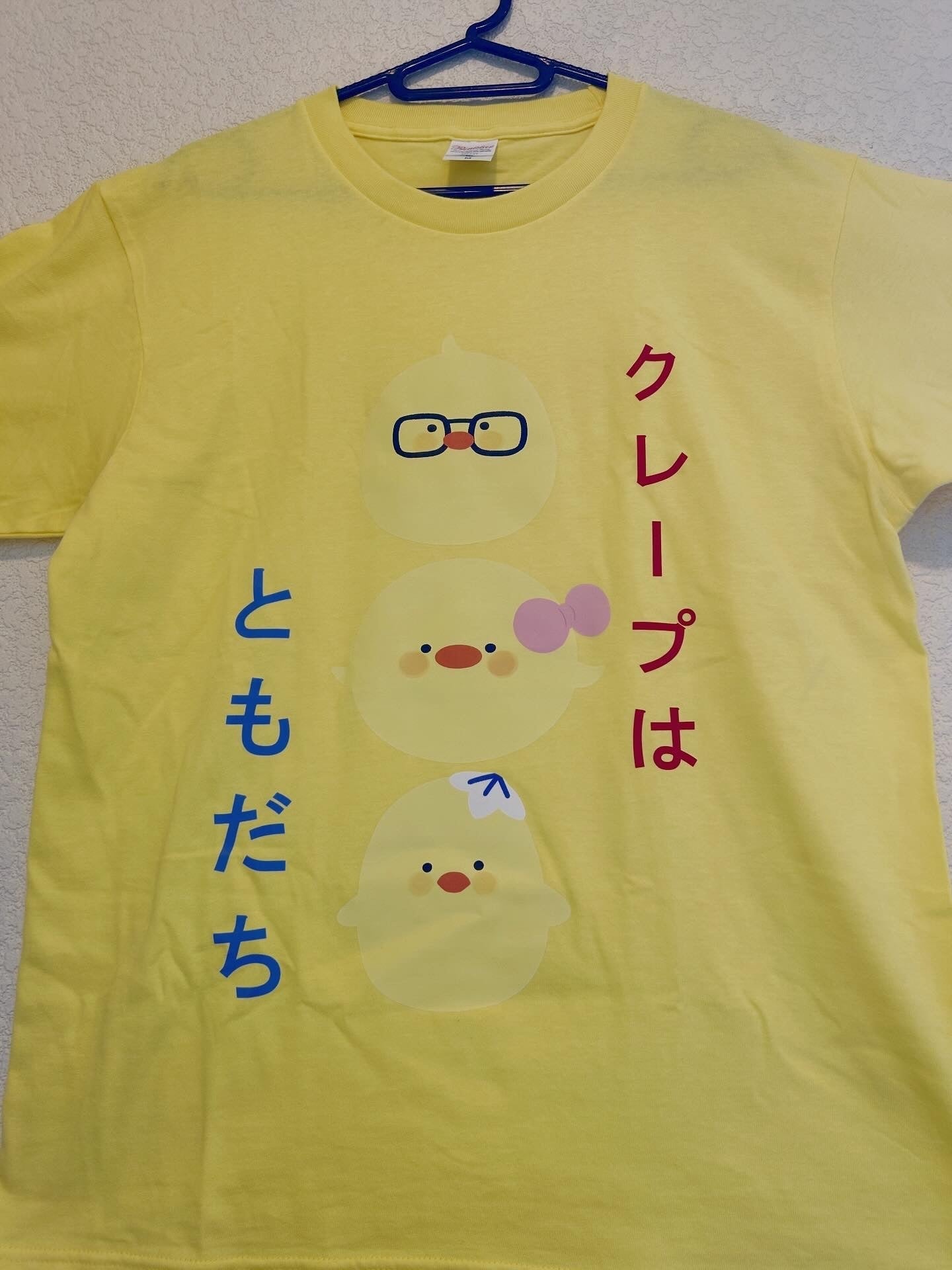 画像キャプションリターン品にある、スタッフTシャツについてサイズや丈などお問い合わせいただいているので、詳しくお知らせしたいと思います。生地はモワティエカラーであるイエローにしました!デザインはタペストリーにもある oekaki_sisi (お絵描きsisi )さんのイラストを表も裏も載せました!イエローTシャツに黄色いヒヨコを載せると見えにくいと思われるかもしれませが、敢えてそうしています!遠くから見て、それぞれのヒヨコのトレードマークである、「メガネ」「リボン」「玉子の殻の帽子」がまず目に入って、「え?何?どんなTシャツなの?」「よく見てみたい!」と思わせるためにそうしています。そう!可愛いヒヨコたちを近くで見てもらいたいのです‼という思いが込められたTシャツになっております。サイズはS・M・Lがあります。子ども用サイズとかあれば需要あるかなぁ…生地が思ったより固いからドライTシャツにすればもっと着やすいかなぁとかまだまだ考え中です。デザインは決定しているので、あとは細かい部分を修正していきます。リターン品に選んでもらえた方々に喜んでもらいたい!その思いで試行錯誤しています!スタッフTシャツなのにまだ1枚ずつしか作っていないため、着る回数はまだ少ないですが(汗)どこかのイベントで着用しています!気にかけて見てくだされば嬉しいです!いつかモワティエのTシャツが大人気になって、みんなが着てくれると嬉しいなぁ!モワティエグッズもたくさん作って広まってくれたら嬉しいなぁ!なーんて夢見ながら今日も出店頑張ります!!