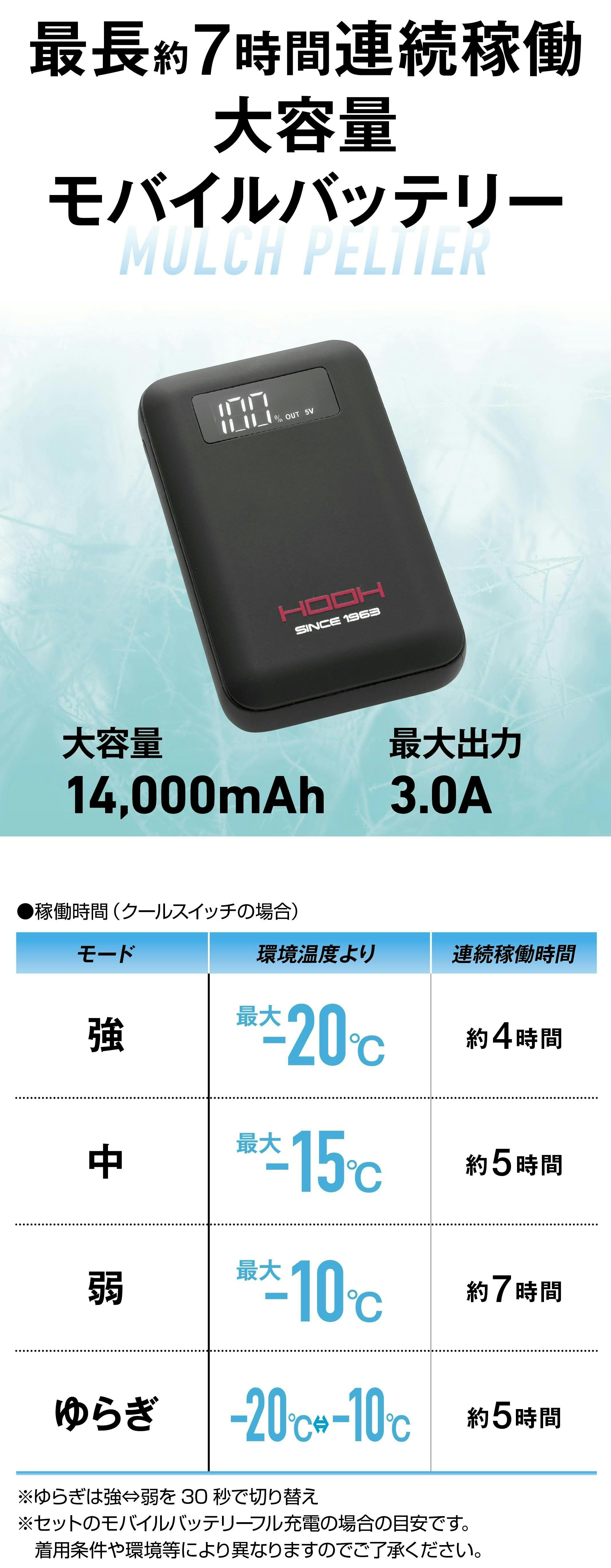 モバイルバッテリーで、長時間の使用にも対応しています。