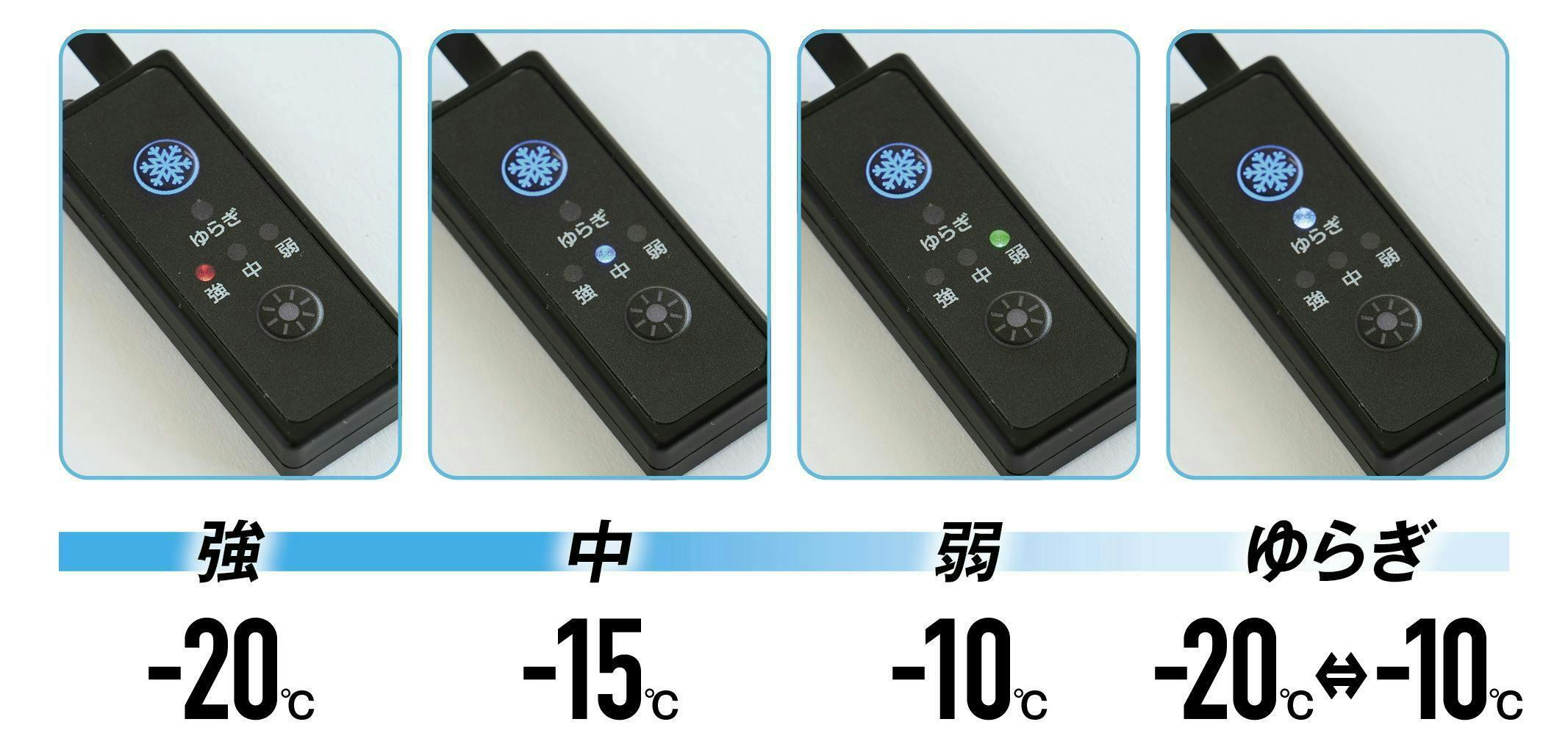 暑さや場所に応じて、3段階で冷却を切替え可能。