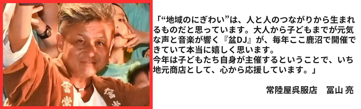 「盆DJ」は、鹿沼を盛り上げたい、誰もがつながれる場所をつくりたいという想いから、