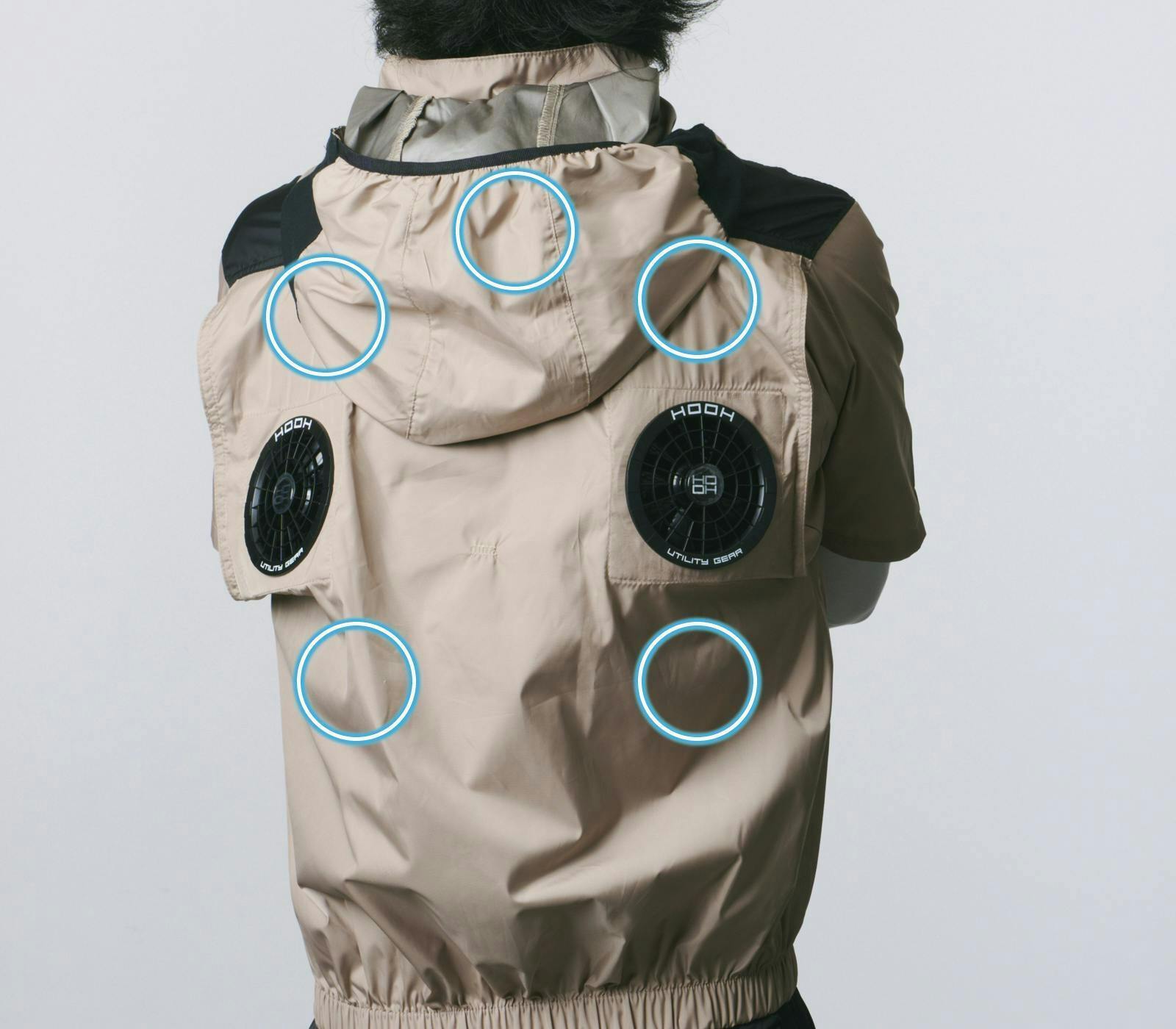 冷却効果が持続するペルチェベストに、ミドルファンの風をあてることで、“冷えを循環させる”新感覚の涼しさが生まれます。