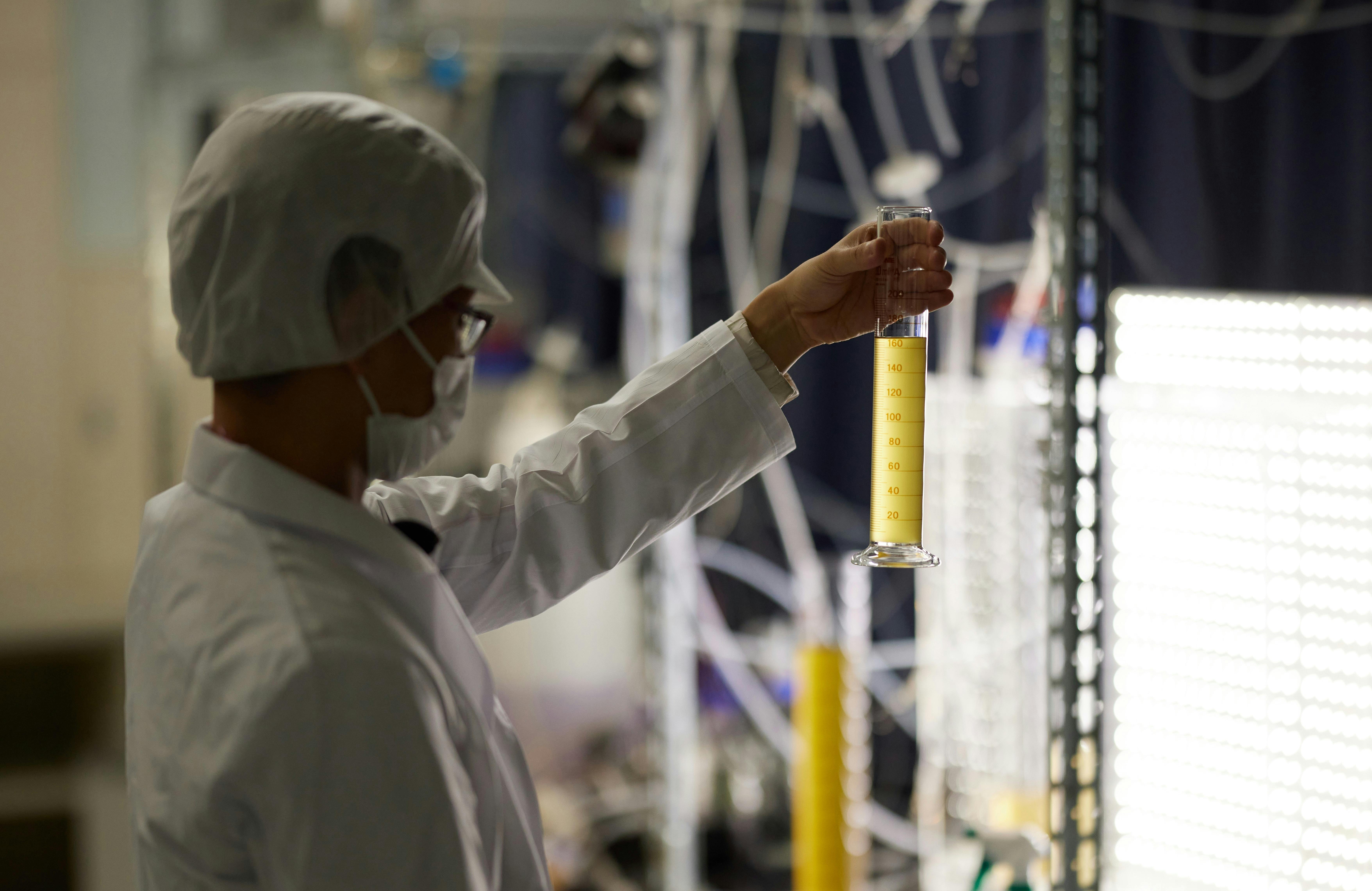 毎日、島の社員によって、収穫前の顕微鏡観察を行い、混じりっ気のない高品質な微細藻類を育てています。