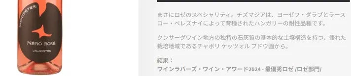 このロゼはサイトのスクリーンショットにある通り、賞を取りました。ネロはいいワインを造れるブドウとして、クンシャーグ地域で一気に広まりました。Szentpeteriワイナリーは、ネロの先駆けワイナリーというわけです。