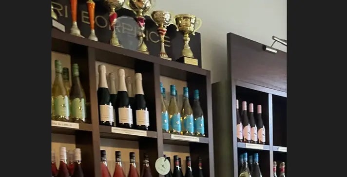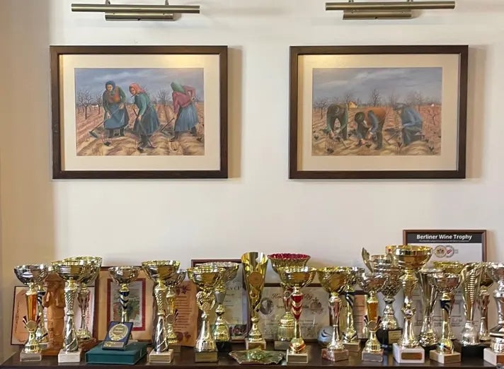 写真はワイナリーの一室。トロフィーだらけでした。