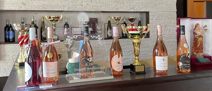 しばらくはどのワイナリーも使いませんでしたが、Szentpeteriワイナリーの2代目(現当主の父)がワイン造りに初めて使い2021年度からロゼを出しています。このロゼは賞も取り、いいワインを造れるブドウとして、クンシャーグ地域で一気に広まりました。