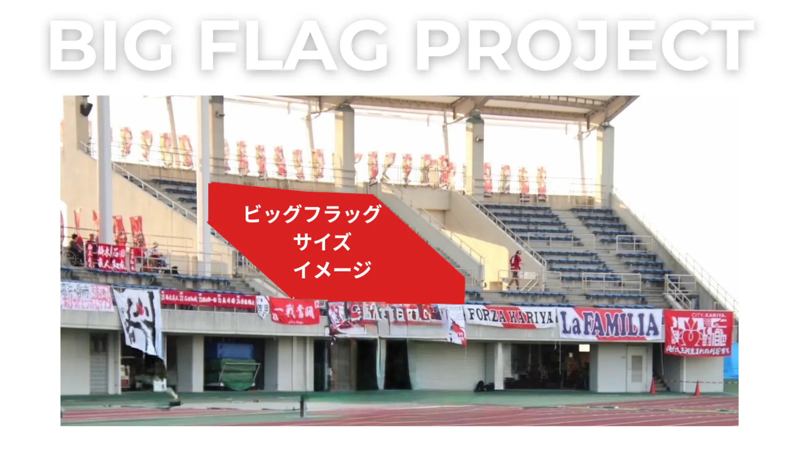 クラブとサポーターが一体となってJFL昇格を果たすため、皆さんの熱い想いを込めたビッグフラッグを制作し、戦う選手たちの試合会場を最高の雰囲気で満たすことを目的としています。