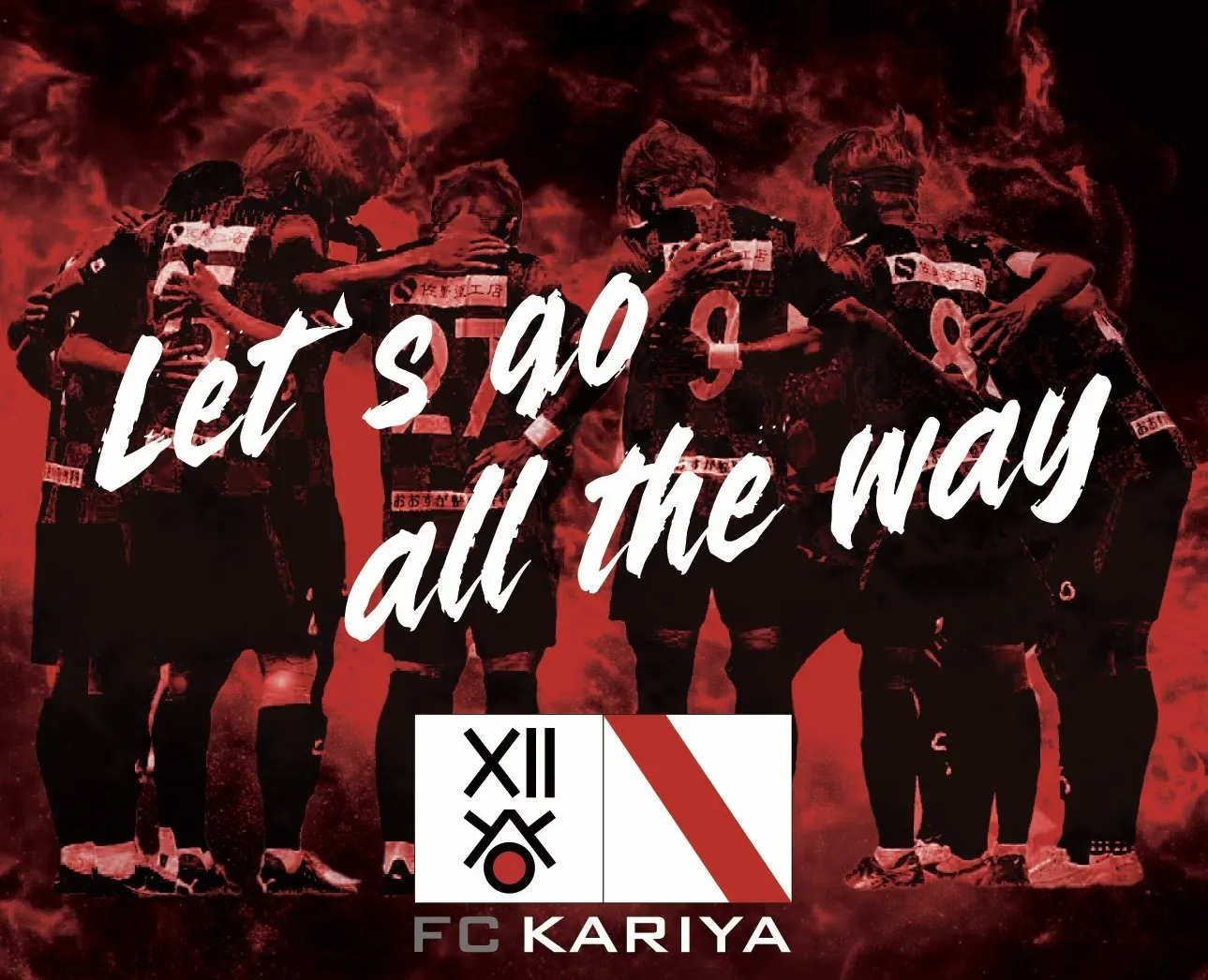 FC刈谷の勝利の歌「どこまでも行こう」の歌詞にあるように、たとえ道が厳しくとも、我々はどんな状況も楽しみ、ともに前に進んでいきます。