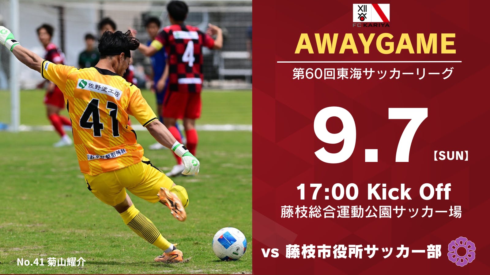 そして明日9月7日(日)17時kick offにてアウェイ藤枝市役所サッカー部とのリーグ戦があります。