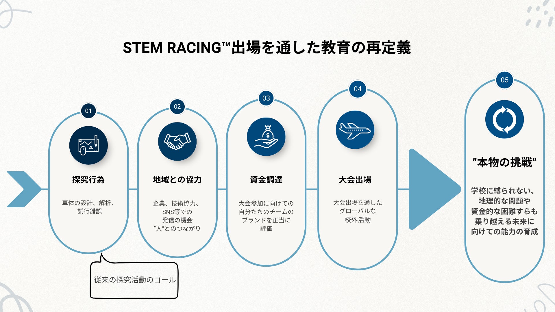つまりSTEM RACINGとは、「未来の科学者・技術者・起業家・リーダーを育てるための、最もリアルな学びの舞台」なのです。