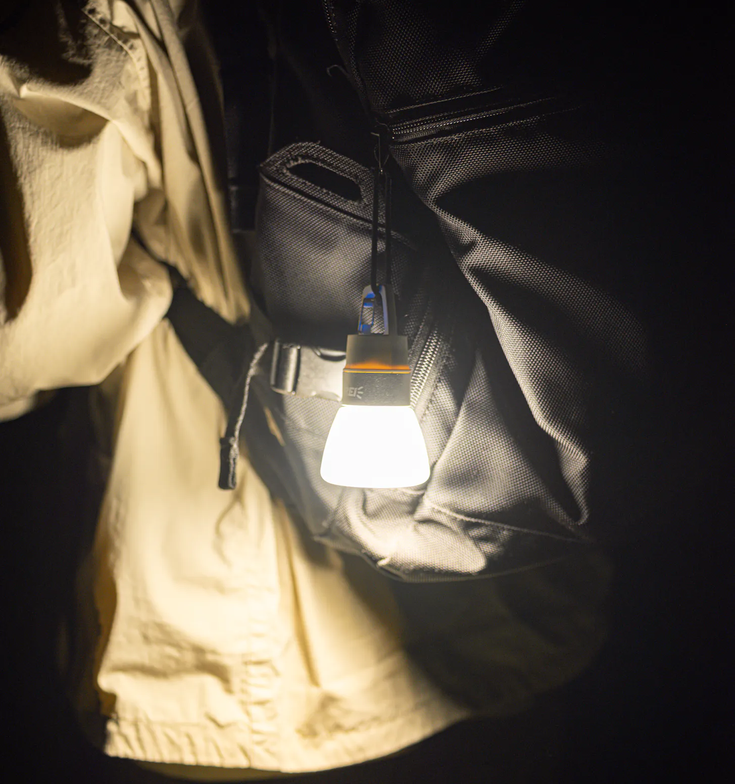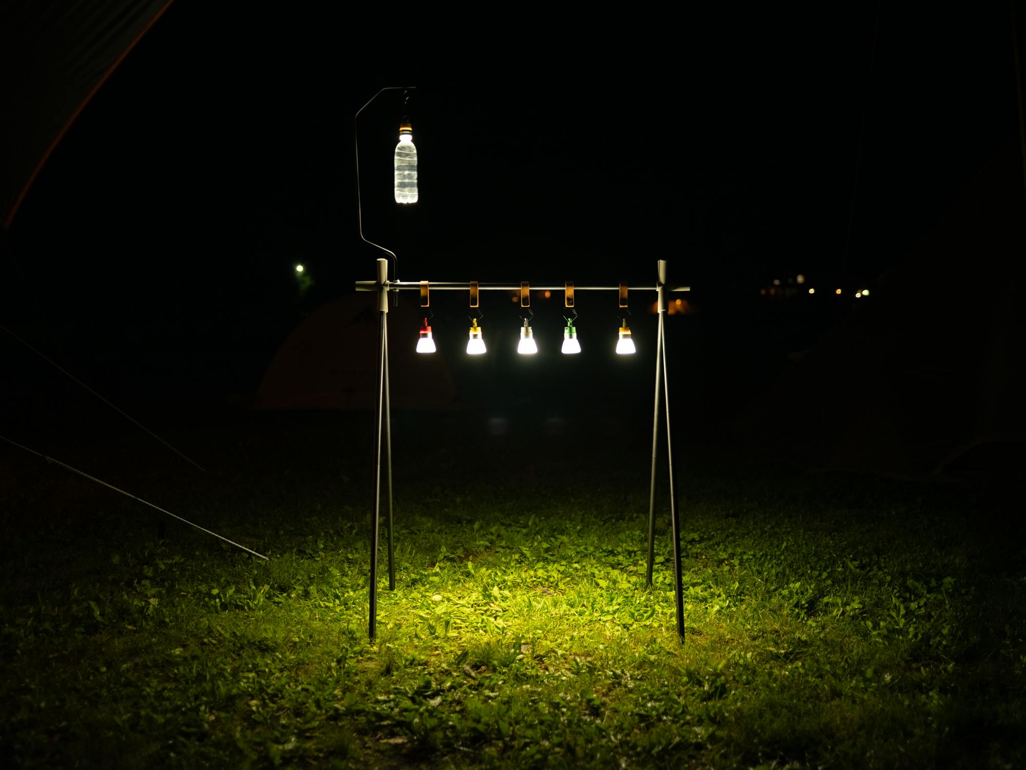 テント・タープの紐に吊るすことにより、夜間の引っかかりなどを防げる