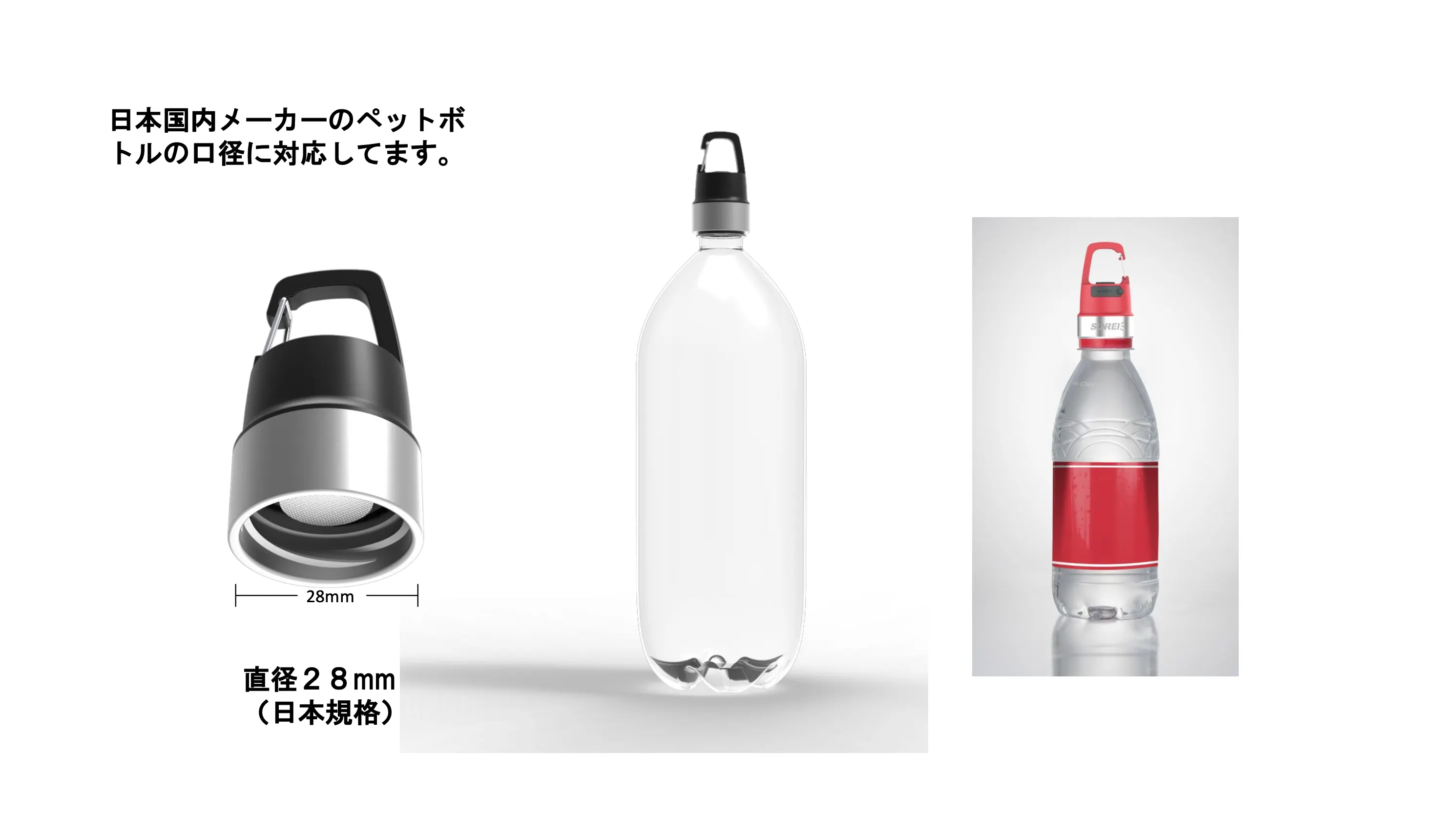 ① 装着簡単:市販の500mlペットボトルにワンタッチで取り付け可能