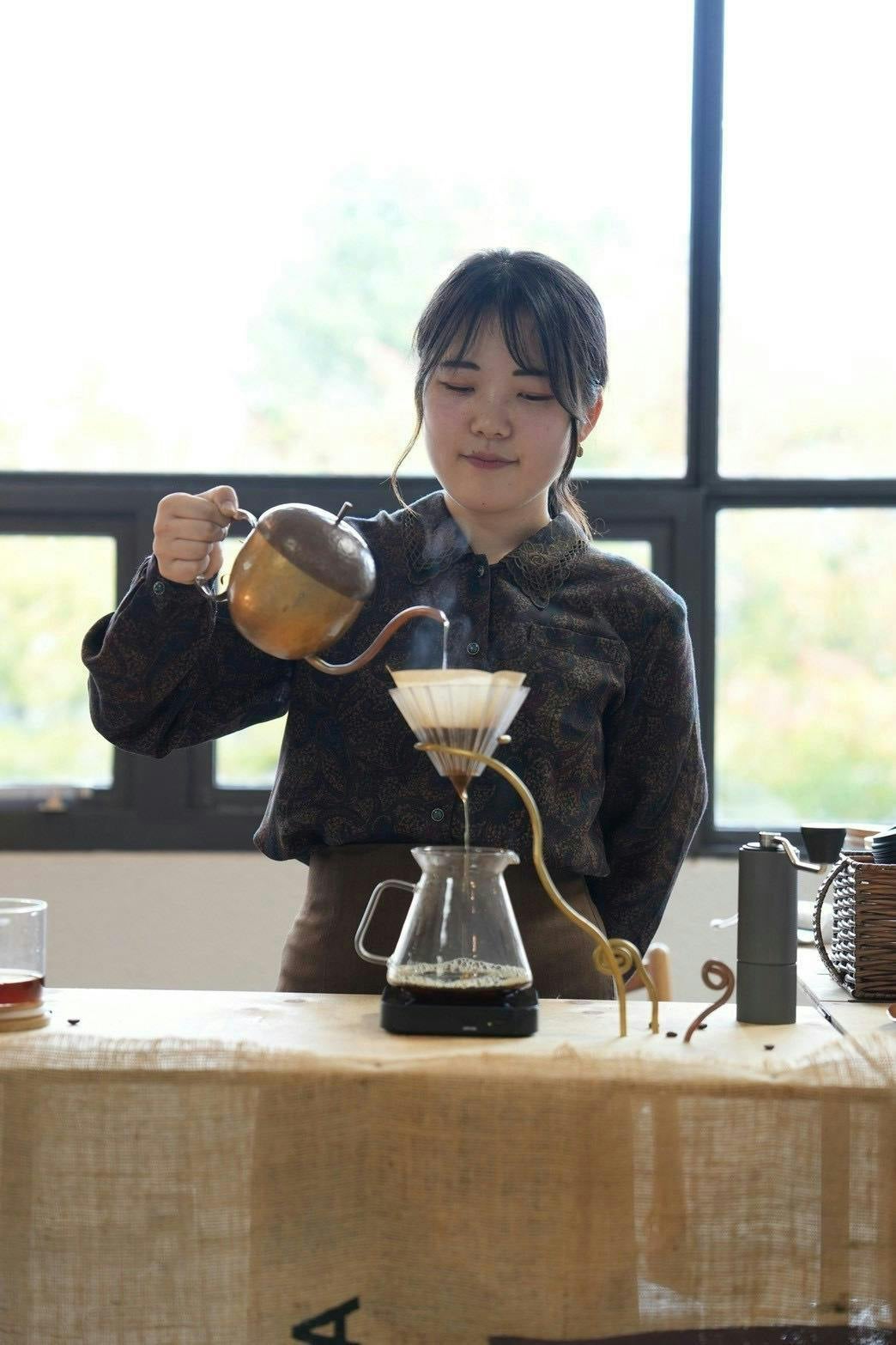 銅板で作った「どんぐりケトル」で一杯ずつ丁寧にドリップ。