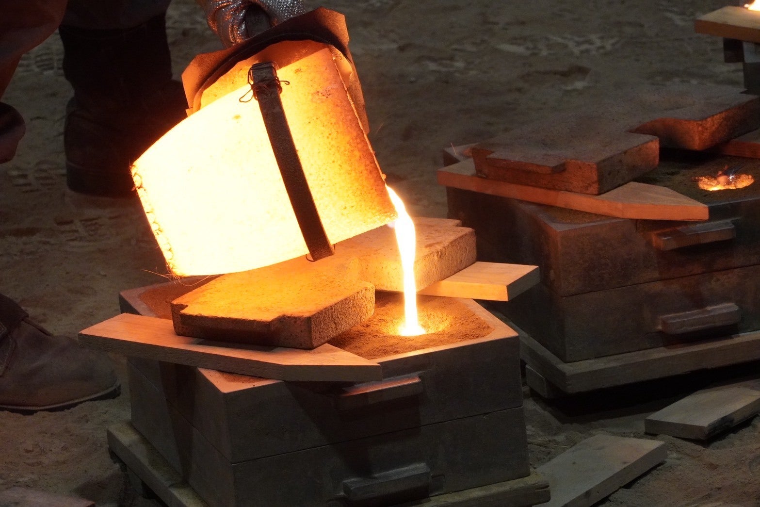高岡銅器を発展させた主力の技法である「生型鋳造法」で制作しています。