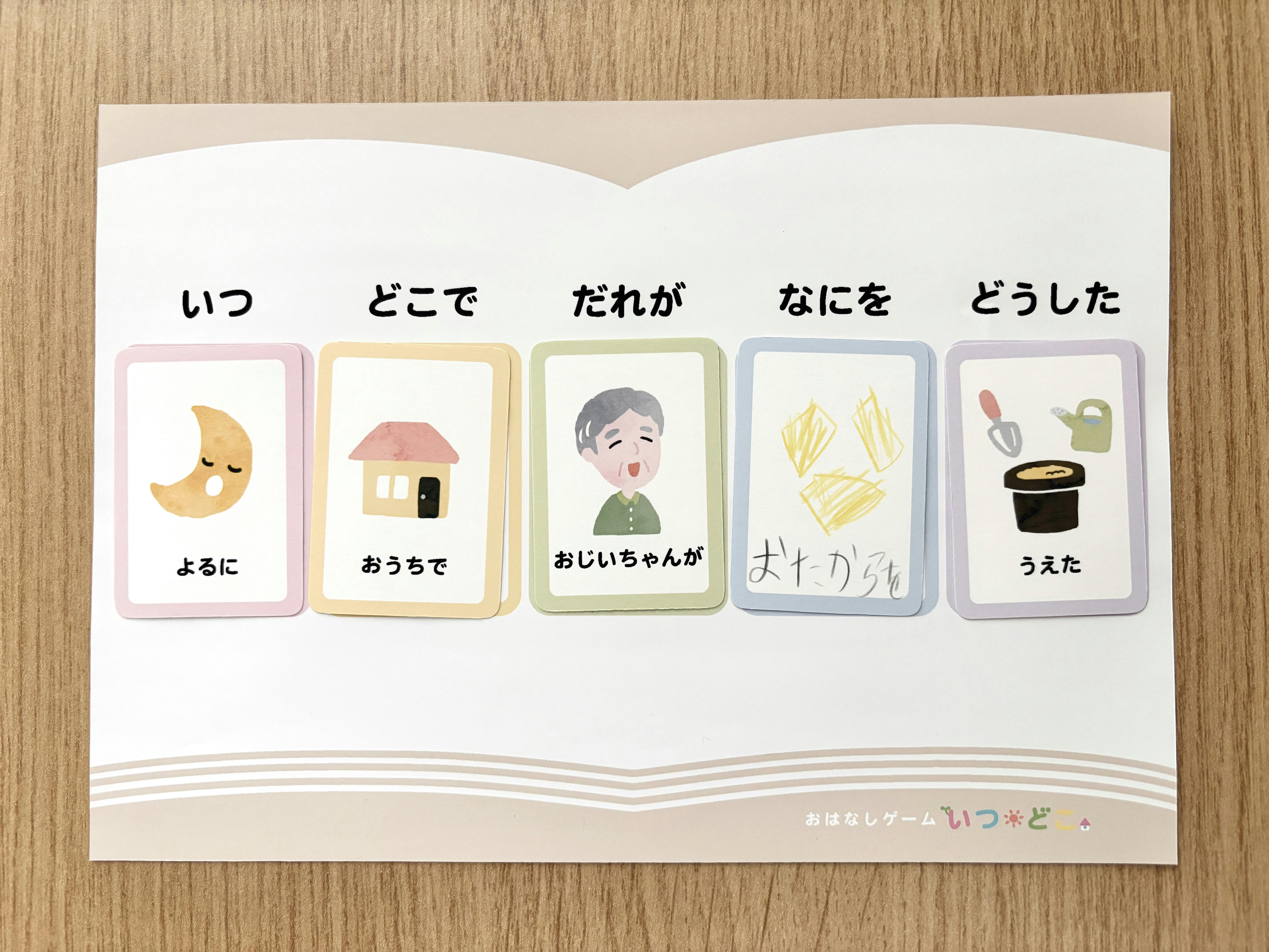 (写真は先日、娘が作ったオリジナルカードを混ぜてプレイしたものです。お宝の木が生えてきそうな、わくわく素敵なおはなしができました。)