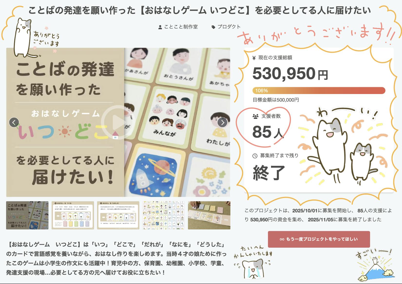 ことばの発達を願い作った【おはなしゲーム いつどこ】クラウドファンディング
