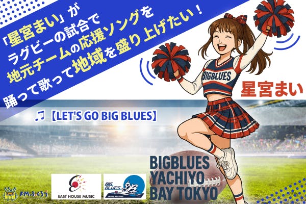 【BIGBLUES八千代ベイ東京】は、2030年のリーグワン昇格を目指す、八千代市が拠点の社会貢献型ラグビーチーム。その挑戦を、同じく八千代市を拠点に活動するアイドル【星宮まい】が全力で応援します。