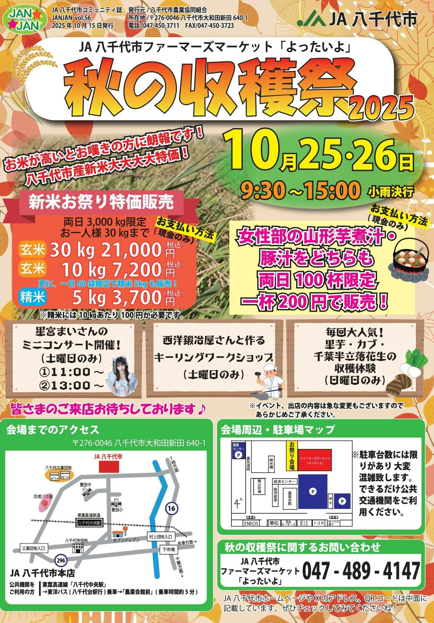 2025/10/25 11:0210/25(土)JA八千代市ファーマーズマーケット『よったいよ』秋の収穫祭観覧無料ライブ中のみ撮影可能(静止画)【出演】①11:00~ ②13:00~【物販】それぞれ出演後!直接会えるチャンス! もっと見る