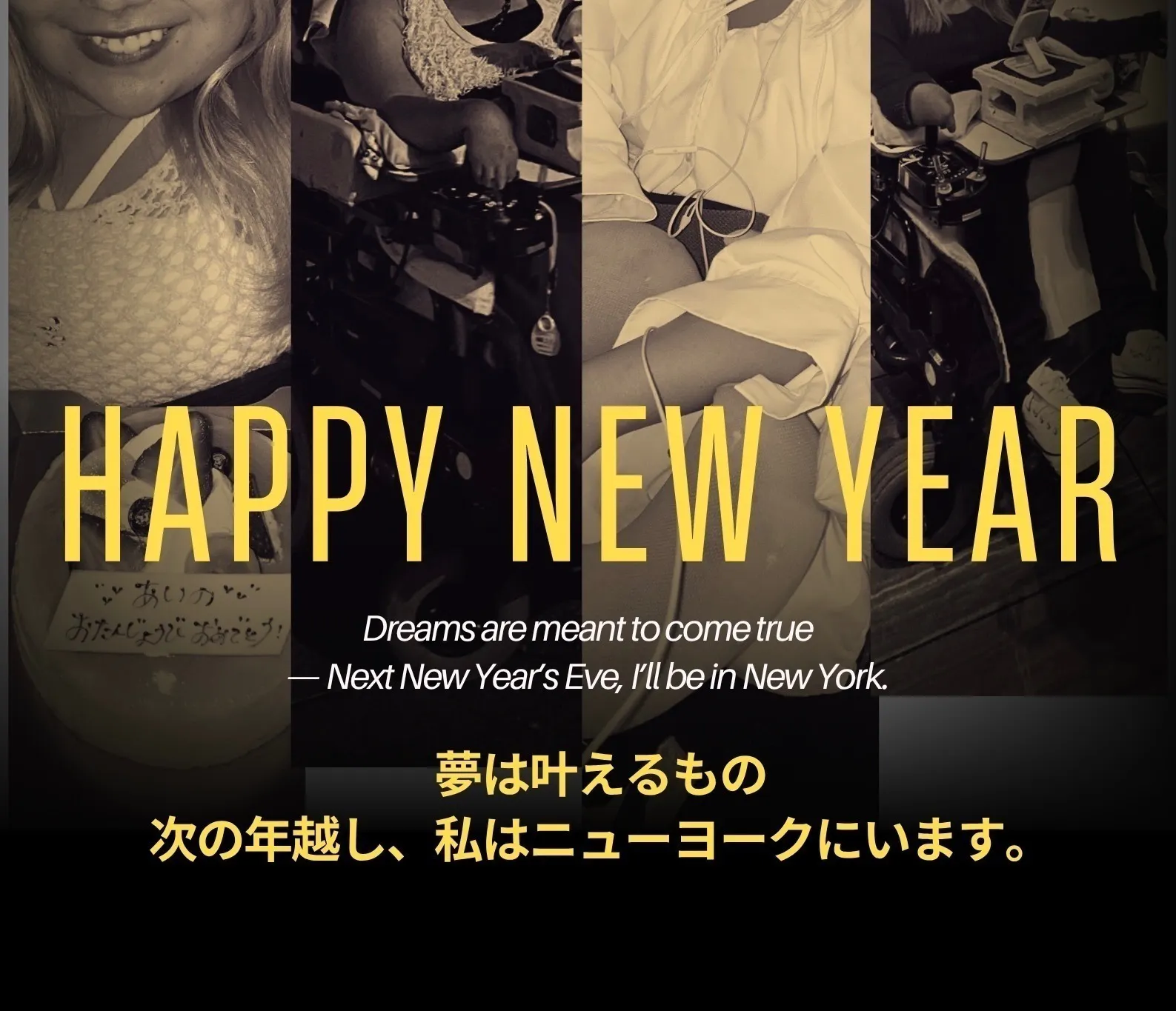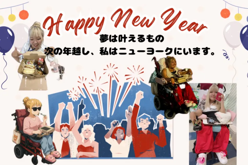私はこれまで、たくさんの「できないかもしれない」を「できた!」に変える経験をしてきました。大学に通いながら、ヘルパーさんと一緒に県外へ旅行したり、初めて飛行機や電車に乗ったり。どれも私にとっては勇気のいる挑戦でした。段差ひとつ、駅の構造ひとつが「壁」になることもあります。それでも、少しずつ乗り越えてきたからこそ、見える景色が広がってきたと感じています。そして今、私は「ニューヨークのタイムズスクエアで、カウントダウンの瞬間を迎える」という大きな夢に向かっています。あの場所で年越しを迎えることは、世界中の人々と時間を共有するという特別な体験です。言葉も文化も違う場所で、自分の存在を肯定できる瞬間を味わいたい。そしてその経験を、これまで「難しいかもしれない」と感じていた多くの人たちに届けたいと思っています。この挑戦は、単なる「旅行」ではありません。自分自身の限界を広げる一歩であり、同じように壁に向き合っている人たちへのメッセージです。