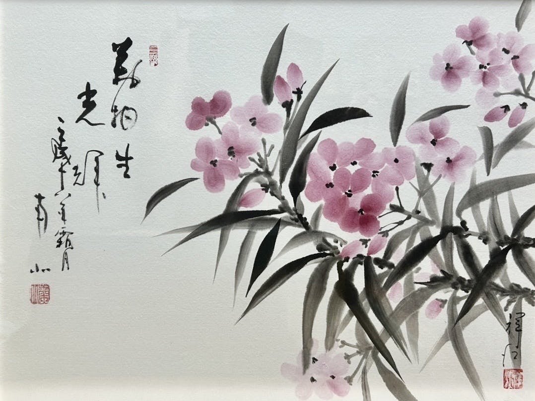 受賞した母の水墨画の巨匠 斎藤南北先生の書が書かれている希少な作品