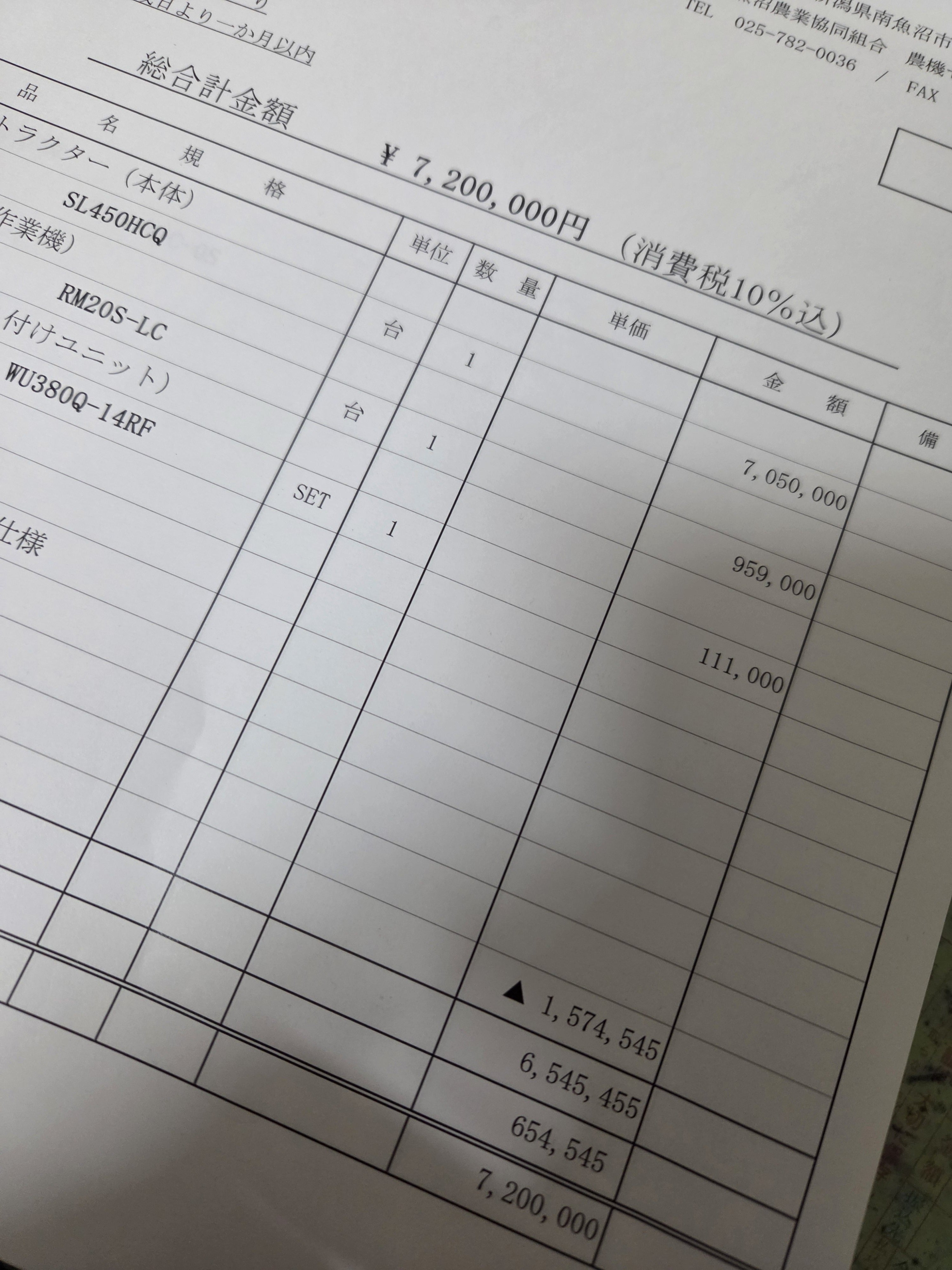 田植え機・コンバイン・乾燥機・・・こんな金額の機械がゴロゴロ必要になってくるのが農業の世界です。