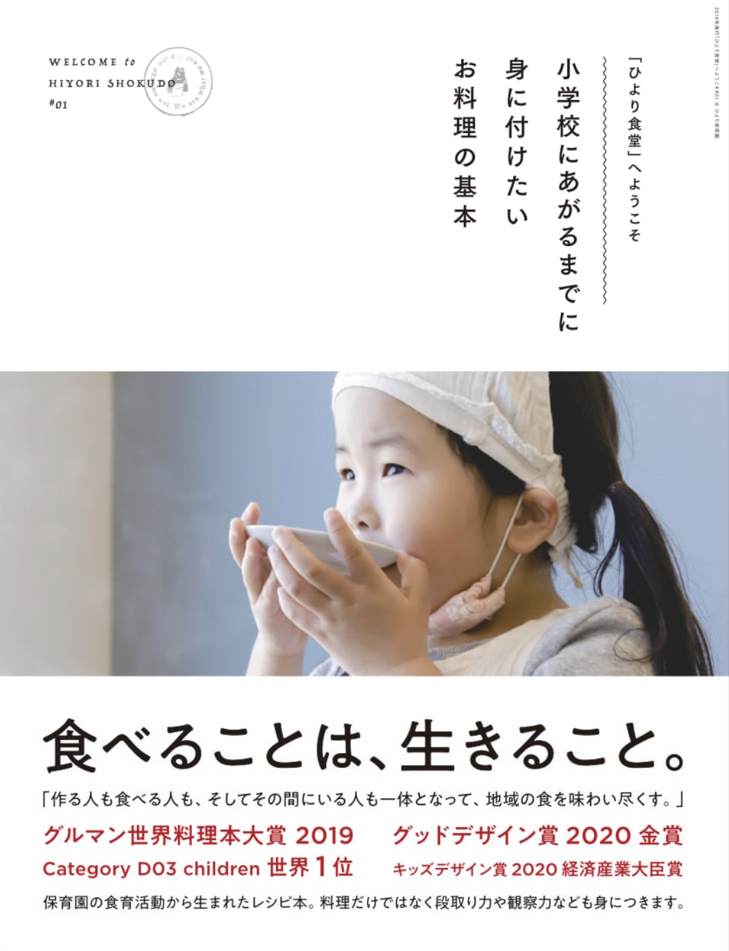 キッズデザイン賞優秀賞に加え、グッドデザイン賞金賞や、グルマン世界料理本大賞child部門世界グランプリを獲得したひより保育園のレシピ本(第3版)とのセット販売もご用意しました。