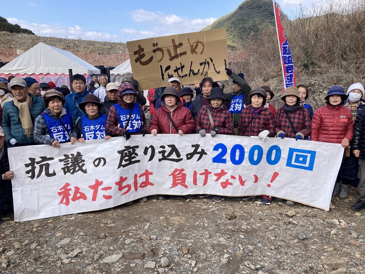 2025年2月17日、川棚町・石木ダム工事現場での座り込み行動は2000回を数えています。