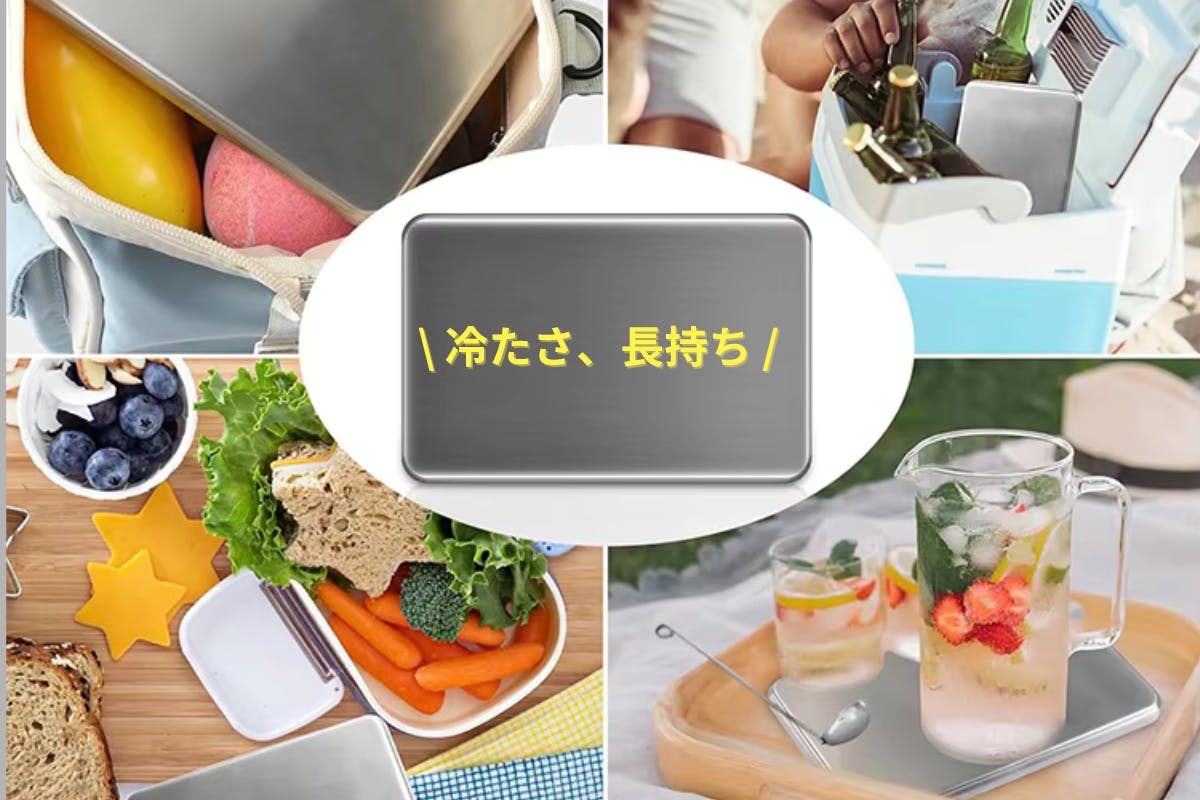 冷たさをキープ。繰り返し使えるステンレス製保冷プレート