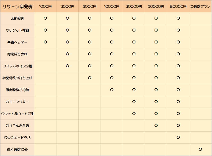 ♡マークはリアルグッズ。 ☆マークは購入条件ありの上乗せ応援プランです。