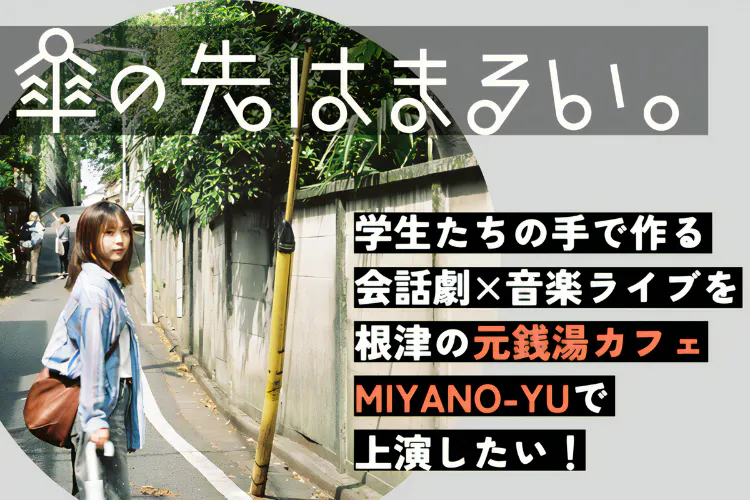私たち日芸の若きクリエイター一同は、『傘の先はまるい。』を通じて、日常の何気ない瞬間や心の機微を表現したいと考えています。晴や高沢英をはじめとするメンバーの創作への情熱が、この舞台を特別なものにしています。皆さまのご支援は、私たちの夢の実現に向けた大きな力となります。
