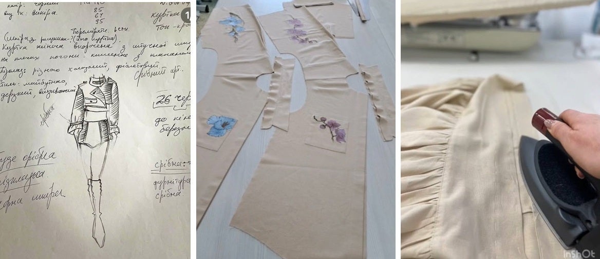 ウクライナで私は、自分のアトリエを持ち11年以上一緒に働いてきた仲間たちがいました。家族のような存在です。しかし、侵攻が始まった後、アトリエを閉じざるを得ませんでした。今も残っているのは、私のブランドの縫製工房です。毎日サイレンが鳴り響く中、危険と隣り合わせの状況でも、スタッフたちは私が描いたデザインをもとに縫い続け、刺繍を続けてくれています。