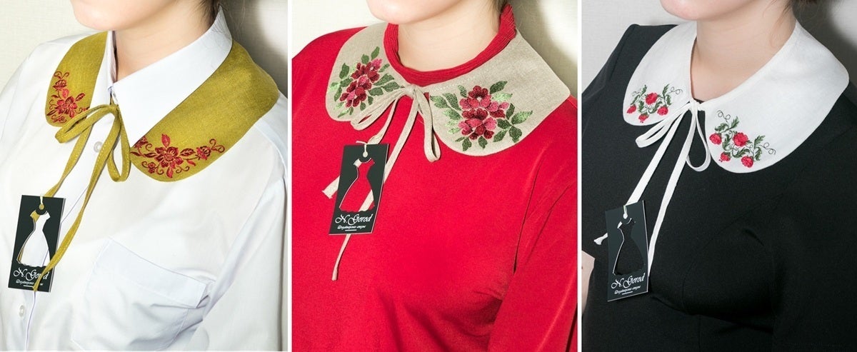 そして、日本に避難してきたことをきっかけに、ウクライナの伝統的な刺繍を活かした新しい商品づくりを開始。日本ではあまり馴染みのない“つけ襟”などに、故郷の特徴的な刺繍を施し販売する活動を続けています。