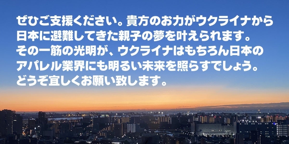 ウクライナのファッションデザイナー・ナタリアさんが日本での生産活動を再始動できるよう、その想いに共感し、支えてくださった皆さまのおかげで達成できたこと、心から感謝申し上げます。