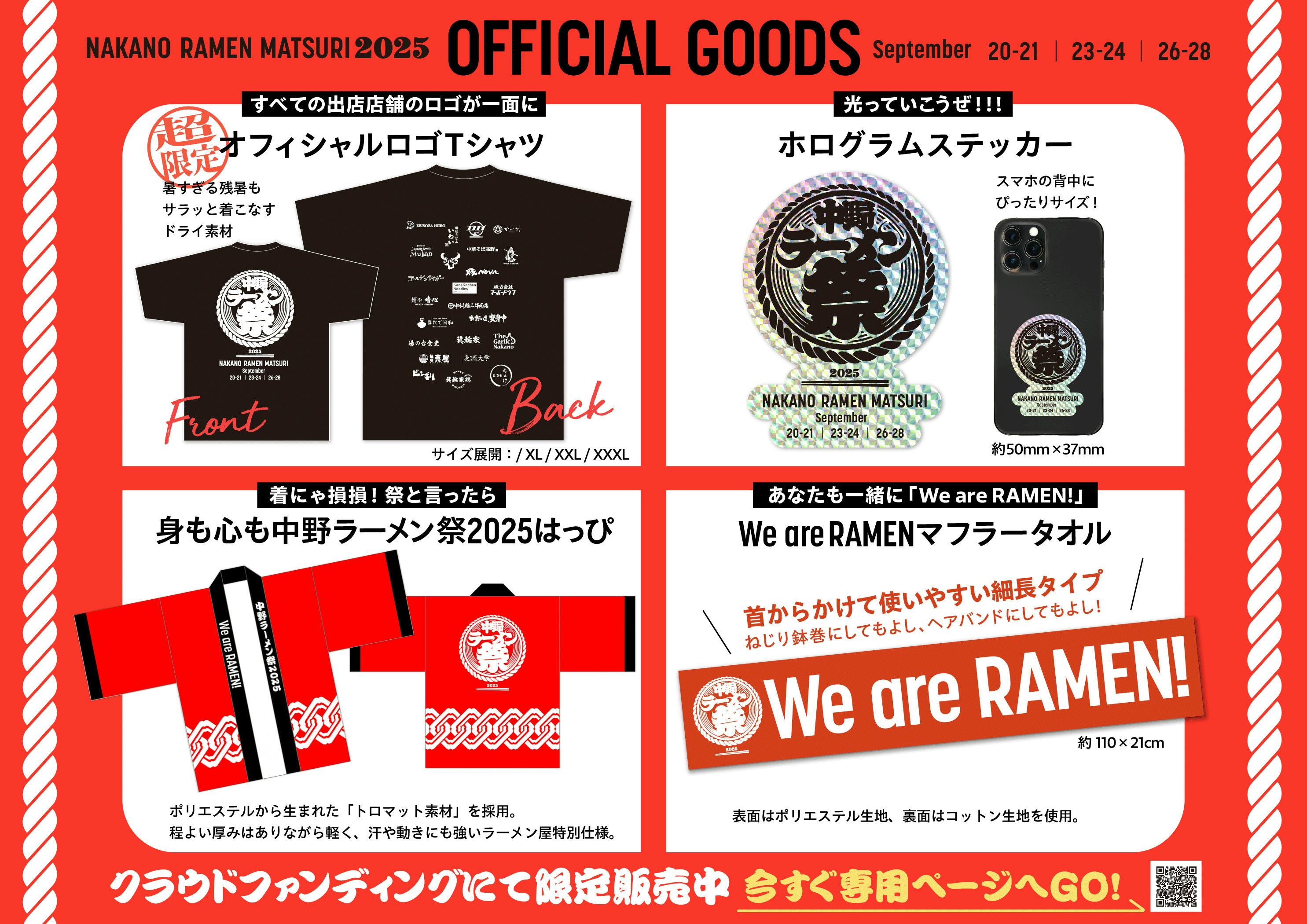中野ラーメン祭2025を記念したオフィシャルグッズを販売いたします。