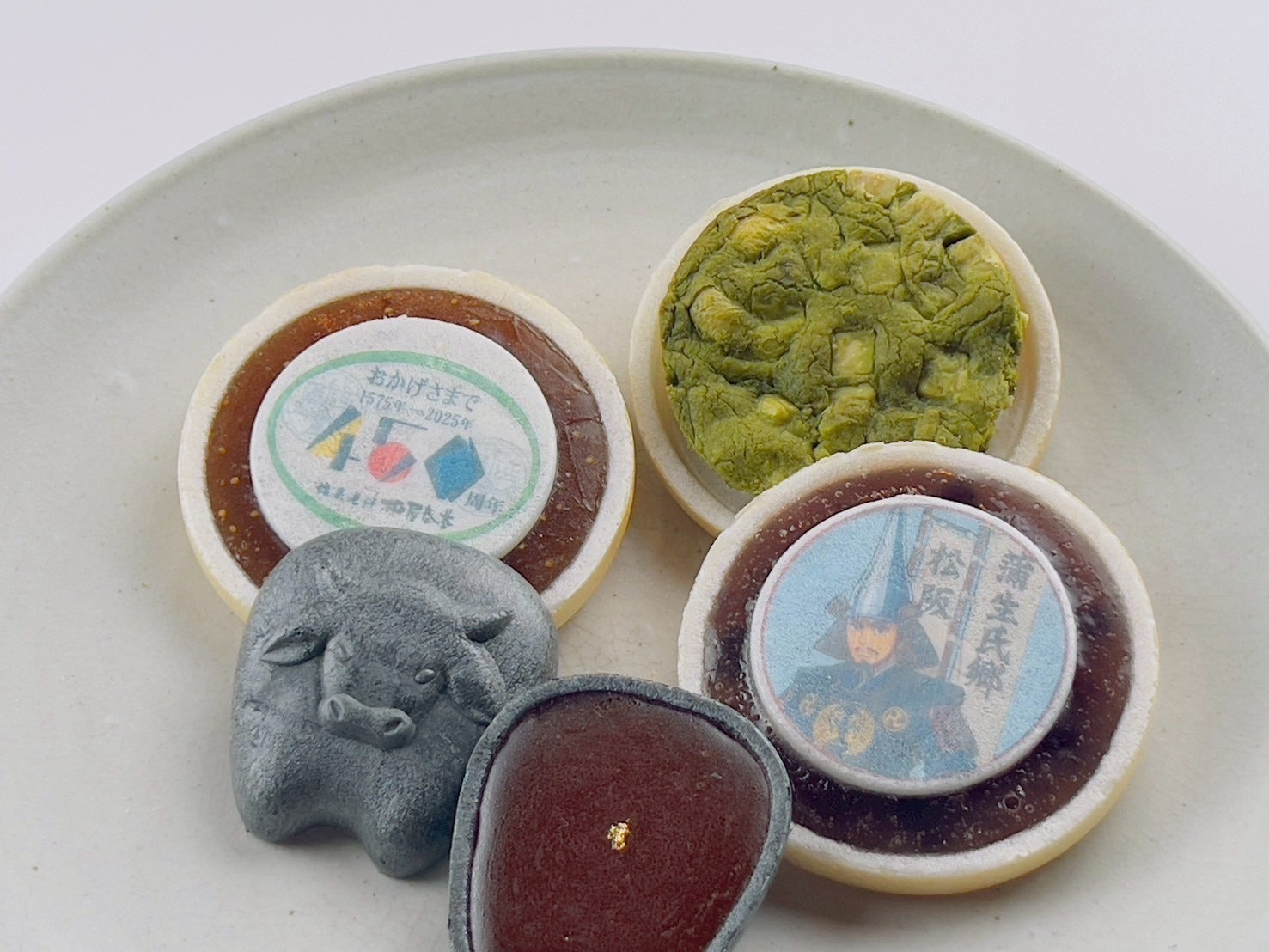 【氏郷あんバター+新竹商店 松阪牛の老伴+お菓子工房M 伊勢茶の老伴+450周年プレート付き無花果】