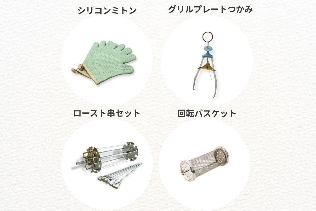 別売オプション(回転バスケット・ロースト串・プレートつかみ・シリコンミトン):9,900円(税込)