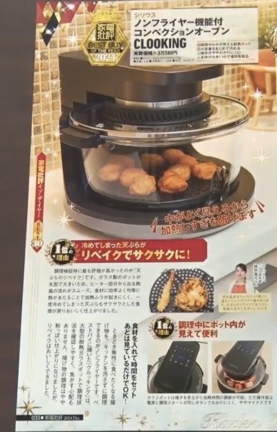 2024年10月発売の「家電批評 12月号」では、ノンフライヤー部門のベストバイ・オブ・ザ・イヤーにも選ばれました!