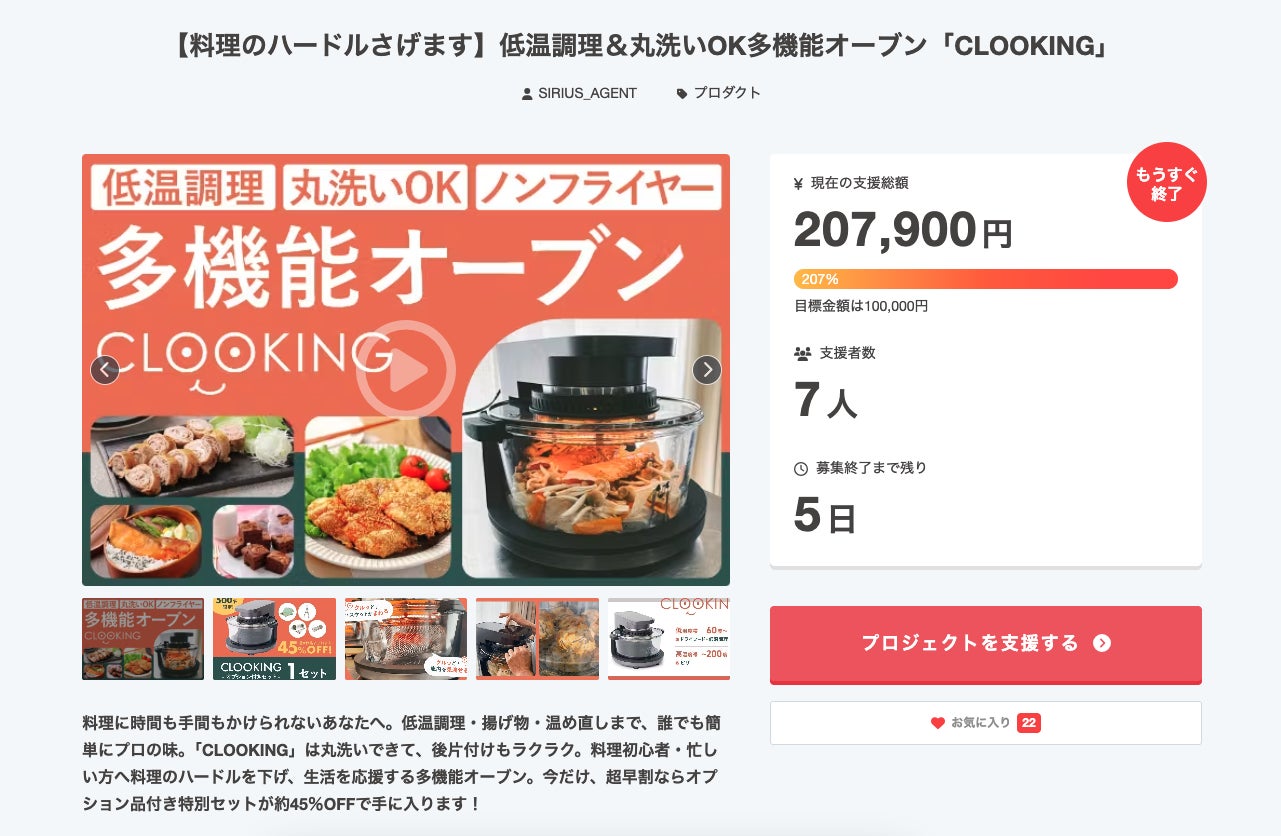2025/11/25 13:31みなさんこんにちは!株式会社シリウスです。本プロジェクトの終了期間が迫ってきております!ご購入をご検討されている方は、ぜひ終了前のお買い得の機会にご購入いただければと思います!また、ご友人・お知り合いの方におすすめしていただき、ご協力いただきたく存じます。無事に達成率も200%を超え、リターン品をご購入いただいた皆さまに深く御礼申し上げます。現在も発送の準備をさせていただいておりますが、本プロジェクト終了後発送準備が整いましたら、活動レポートにてお知らせいたします。お届けまで今しばらくお待ちいただきますようお願いいたします。ご不明点等ございましたら、お気軽にお問い合わせくださいませ!引き続き、何卒よろしくお願いいたします。 もっと見る