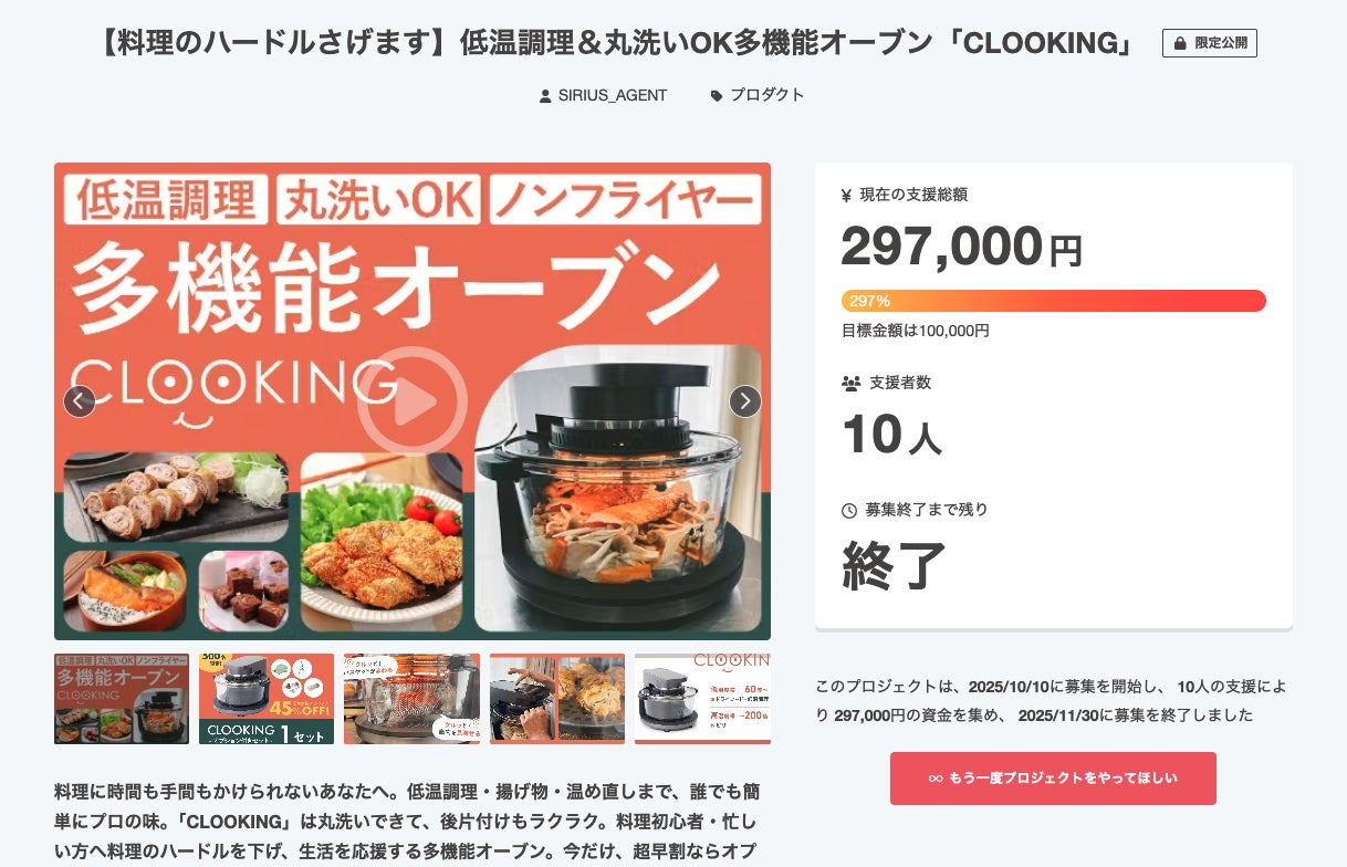 2025/12/01 13:22みなさまこんにちは、株式会社シリウスです!無事にプロジェクトが終了し、目標金額を上回る結果になり、大変嬉しく思います。ご支援いただきましたみなさま、誠にありがとうございました!リターン品に関しましては、【 12月3日(水)】の発送を予定しております。送り状番号等の詳細が分かりましたら、メッセージにてお知らせいたしますので、今しばらくお待ちいただきますようお願い申し上げます。ぜひお手元に届きましたら、ご家族でご愛用いただければと思います! もっと見る