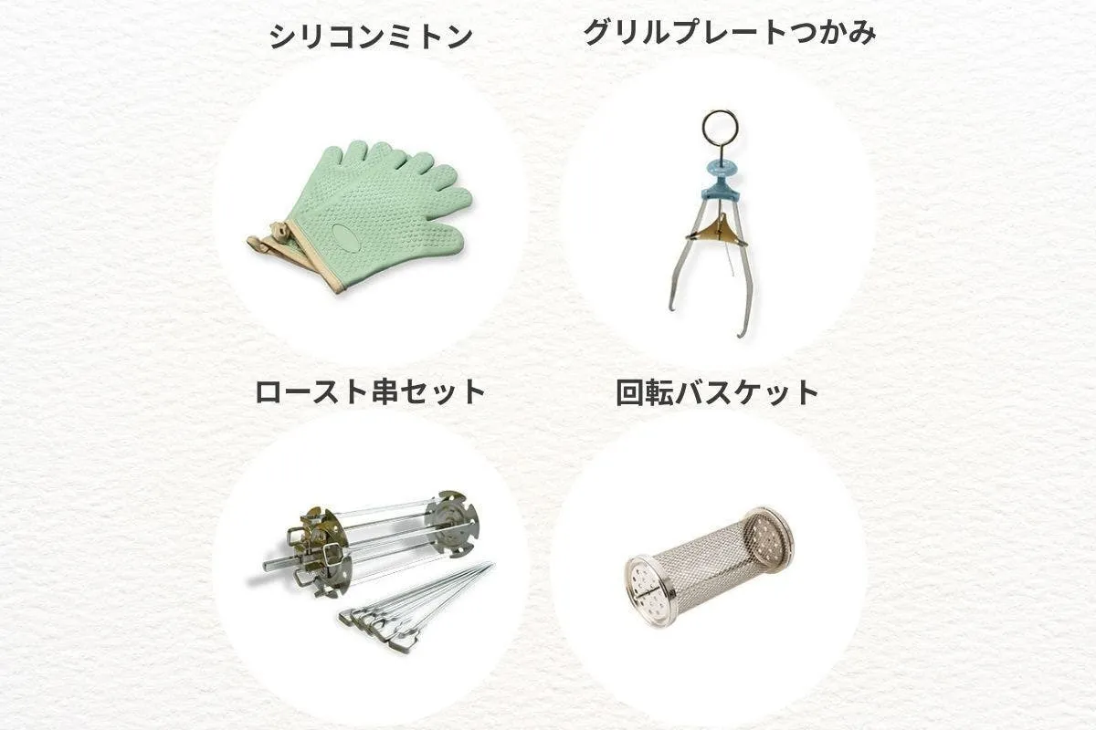 別売オプション(回転バスケット・ロースト串・プレートつかみ・シリコンミトン):9,900円(税込)