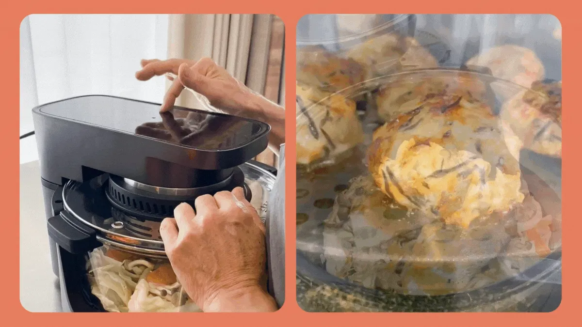 60℃から205℃まで対応するワイドな温度設定で、鶏ハムやローストビーフなどの低温調理も、唐揚げやグラタンなどの高温調理もこれ一台でOK。火加減の難しいメニューも、設定して放っておくだけでしっとり・パリッと絶妙な仕上がりに。料理の幅がグッと広がります。