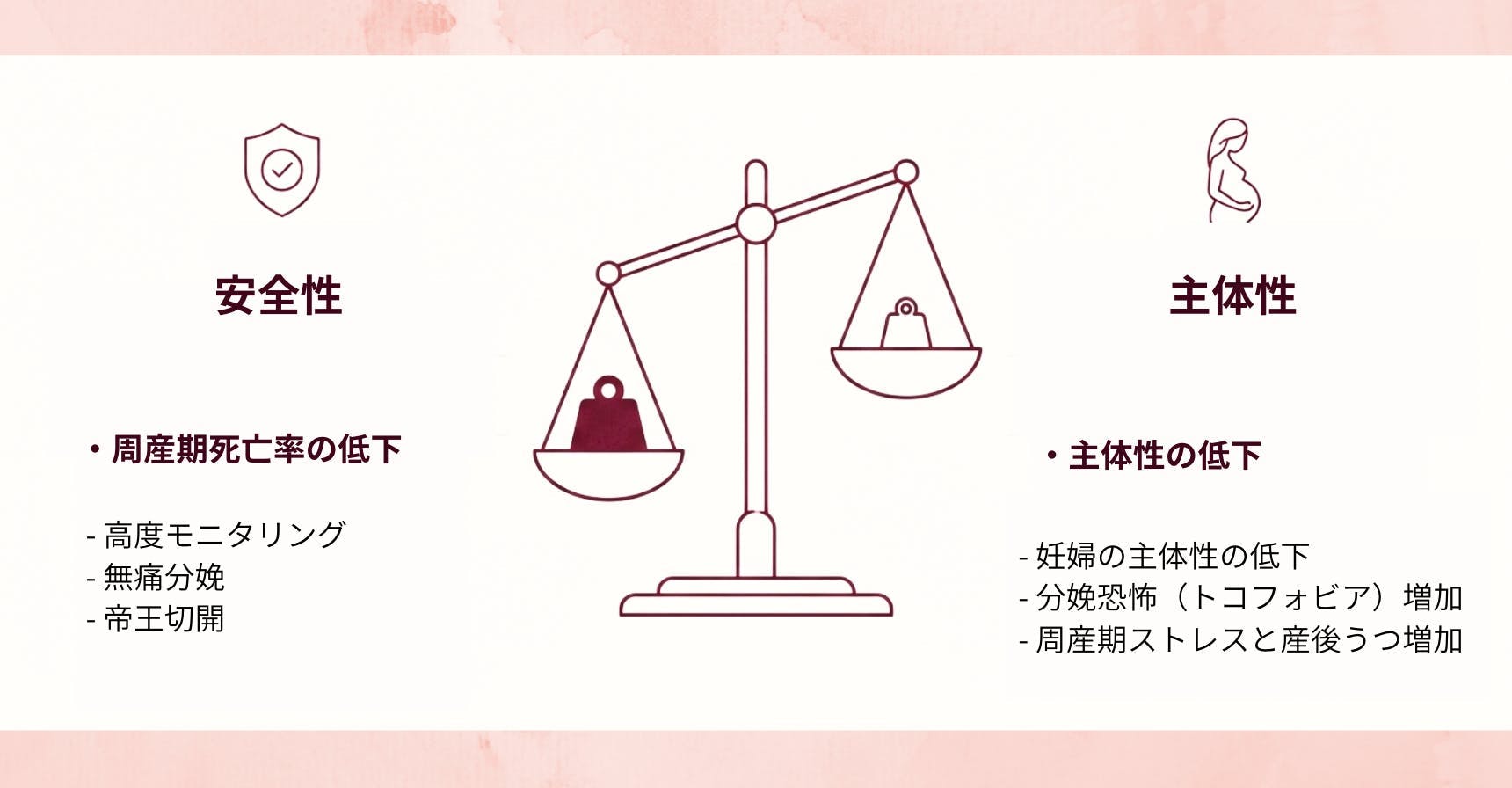 現代医療の発展と安全性向上は素晴らしく有難いことですが、それと引き換えに妊婦さんのお産に対する主体性が低下しやすくなる側面もあります。