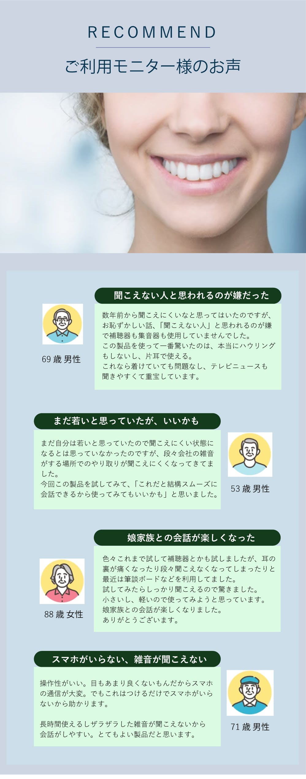 難聴度合いが軽度の方のサポートを想定した製品となります。あらかじめご了承の上、ご支援をお願い致します。