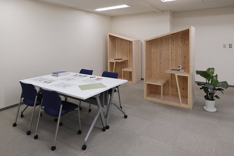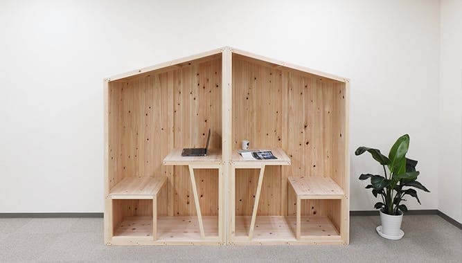 私たちが開発した「ひとときばこ」は、六甲山ヒノキという地域材を贅沢に使った、集中力が高まる小さな空間です。