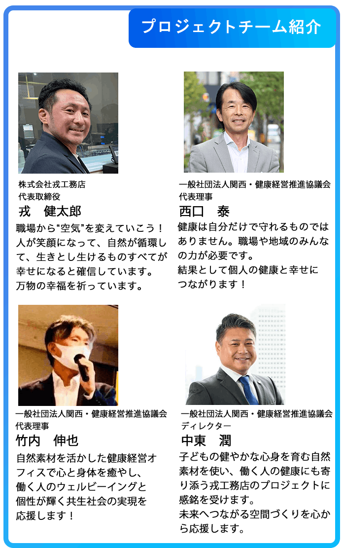 健康経営や職場環境改善に取り組む企業・団体に向けて、実践の第一歩となる場を届けたいと考えています。あなたの会社やチームにも、この新しい職場づくりを広げてみませんか?