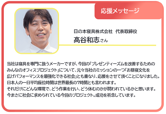 そしてカンケンキョウで発表の機会をいただき、また『カンケンキョウの健康経営オフィスをつくって欲しい』という熱烈なオファーをいただいたことで、この企画がスタートしました。