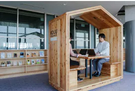 鹿児島県庁18階コワーキングスペース「かごゆいテラス」は県内のスタートアップ事業者等に無料で開放されているスペースですが、なんとその中に我々の「みんなのオフィスプロジェクト」のアイテムである「ひとときばこ」とそっくりのアイテムが設置されておりびっくり! 鹿児島県の担当者によるとひっきりなしに利用されているとのことです。忙しい合間に1人だけの空間となったり木ならではのぬくもりが利用者にとって心地よい空間となっているのでしょう!