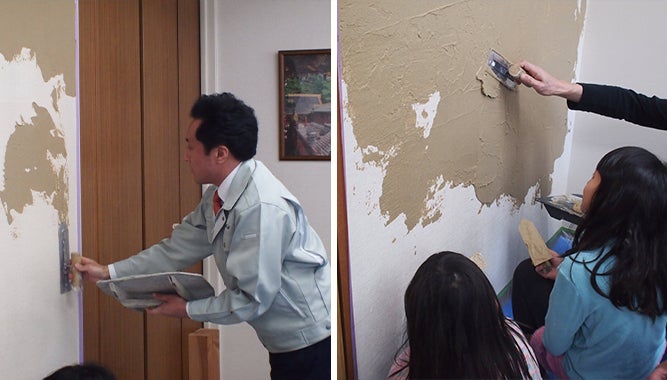 ③空気感 『空気感』では、隣の人がどんな人なのか、どんな仕事が得意で何が苦手なのか、仲間のことが分からない職場の空気を、壁塗りや家具づくりといった共同作業の中で、チームに変えていきます。