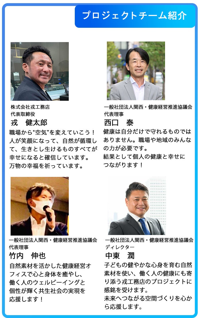 健康経営や職場環境改善に取り組む企業・団体に向けて、実践の第一歩となる場を届けたいと考えています。あなたの会社やチームにも、この新しい職場づくりを広げてみませんか?